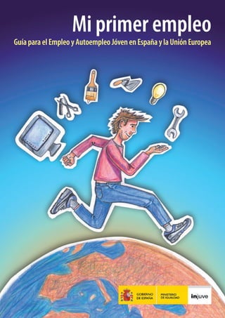 Este documento presenta una guía para que los jóvenes encuentren empleo en España y la Unión Europea. Explica los primeros pasos para buscar trabajo como determinar tus objetivos y habilidades, e investigar las oportunidades disponibles. También proporciona herramientas como sitios web de empleo y consejos para crear un currículum, entrevistas y cómo crear tu propio negocio. El objetivo es ayudar a los jóvenes a navegar el proceso de encontrar trabajo y lograr la independencia económica.