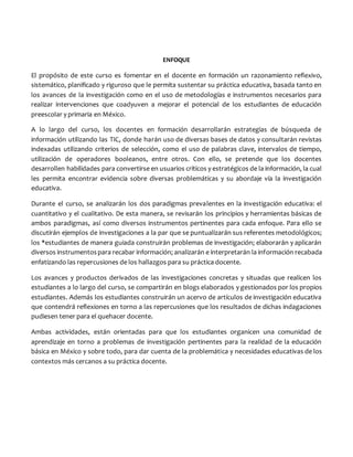 Este documento presenta la guía de aprendizaje para el curso "Herramientas Básicas para la Investigación Educativa" impartido a docentes en formación. El propósito del curso es desarrollar un razonamiento reflexivo y sistemático en los estudiantes que les permita sustentar su práctica docente con base en la investigación educativa. A lo largo del curso, los estudiantes aprenderán a buscar y analizar información de investigación usando bases de datos y desarrollarán proyectos de investigación sencillos. El