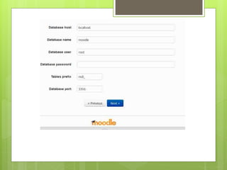 El documento es una guía para la instalación del software de e-learning Moodle, destinado a educadores para crear cursos en línea. Detalla requisitos previos como WAMP y el uso de servicios de hosting gratuitos como Hostinger. Instruye sobre la instalación de Moodle y el registro de administradores para gestionar cursos y estudiantes.
