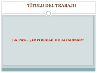 Este documento presenta una guía didáctica para un proyecto sobre la paz dirigido a estudiantes de grado once. El proyecto busca reflexionar sobre cómo cada persona puede contribuir a lograr la paz a través de actividades innovadoras que promuevan valores y comportamientos adecuados. Se divide en tres unidades que analizan factores para lograr la paz, identifican valores mediadores, y permiten a los estudiantes imaginar un mundo mejor con paz. La metodología incluye trabajo individual, debates, dinámicas en equipo y escrit