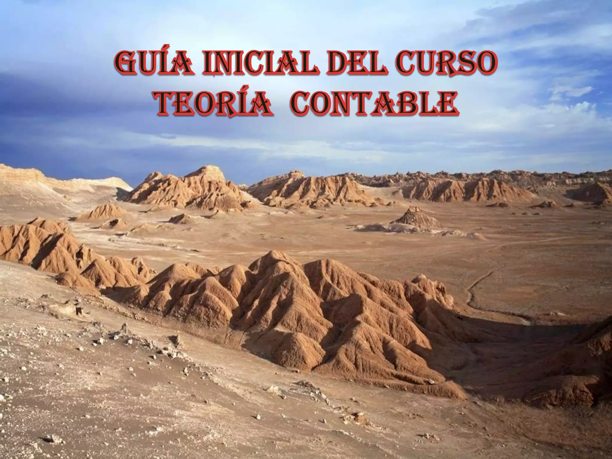 La guía introduce el curso de Teoría Contable describiendo la estructura del curso, sus objetivos, evaluaciones y logros. Explica que la cartelera se usará para anuncios académicos y actividades, y que la presentación del curso incluirá el plan de estudios con objetivos, contenido y estrategias de evaluación. También presenta la cafetería virtual y el taller virtual como lugares de encuentro social y resolución de dudas que contribuyen al aprendizaje cooperativo.