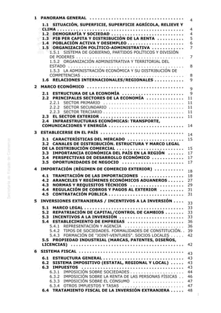 Este documento proporciona una guía sobre aspectos clave del país de Perú. En primer lugar, ofrece un panorama general que incluye información demográfica, económica y política. Luego, analiza el marco económico del país, incluidos los principales sectores como la agricultura, la industria y los servicios. Por último, cubre consideraciones importantes para las empresas que deseen establecerse en Perú, como el sistema fiscal, la financiación y la legislación laboral.