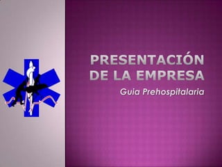Este documento presenta una guía prehospitalaria que provee información sobre medicina prehospitalaria y hospitalaria a nivel local e internacional a través de una revista física y digital, página web y programas educativos. La guía tiene como misión satisfacer las expectativas en la medicina prehospitalaria y hospitalaria de manera innovadora y como visión ser líder en información, capacitación e innovación en el ámbito prehospitalario a nivel nacional e internacional.