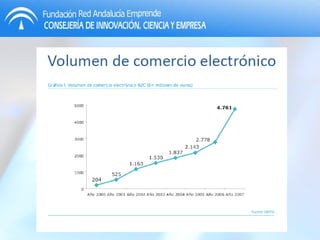 El documento resume las ventajas y consideraciones del comercio electrónico para las pymes, incluyendo la promoción global a bajo costo, reducción de barreras de acceso a mercados, y comparación de ofertas para los consumidores. También discute cuestiones legales como la protección de datos y seguridad de transacciones, así como formas de apoyo disponibles para las pymes.