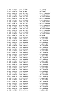 El documento presenta una lista de registros que incluyen el estado, municipio y parroquia de ubicación. Todos los registros corresponden al estado Guarico en Venezuela y se distribuyen entre los municipios Infante, Mellado, Miranda y Monagas, mencionando diversas parroquias en cada uno de ellos.