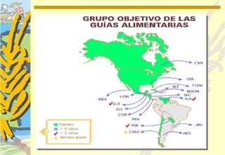 Este documento describe el proceso de elaboración de las Guías Alimentarias en Paraguay, incluyendo un análisis de la situación nutricional, la identificación de problemas prioritarios como el bajo consumo de frutas, verduras y productos lácteos, y las recomendaciones para mejorar los hábitos alimenticios de las familias paraguayas a través de mensajes sobre una alimentación variada y balanceada.