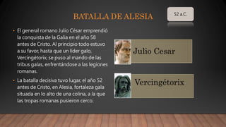 Las estrategias descritas incluyen: 1) Julio César rodeó la fortaleza gala de Alesia con dobles empalizadas y fortines para sitiar a los galos dentro; 2) En la batalla de Qadesh, el rey hitita atrajo al ejército egipcio con desertores falsos antes de emboscarlos; 3) En Maratón, los griegos debilitaron el centro de su línea para derrotar a los flancos persas que se adentraron.
