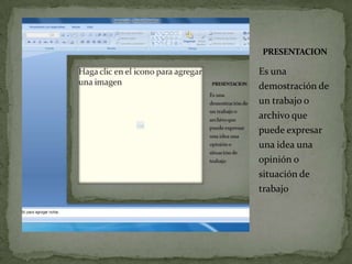 El documento presenta una guía sobre las características y funciones básicas de Microsoft PowerPoint. Explica que PowerPoint permite crear presentaciones para compartir ideas u opiniones. Describe las vistas, reglas, objetos, tablas, gráficos, animaciones y autoformas que ofrece el programa para organizar y dar vida a las presentaciones de manera flexible y atractiva.