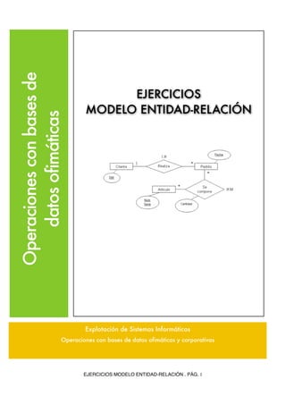 Este documento presenta 18 ejercicios sobre el modelado de bases de datos usando el modelo entidad-relación y el modelo relacional. Los ejercicios proporcionan descripciones de diferentes situaciones del mundo real y piden diseñar los modelos E-R y relacionales correspondientes, así como implementarlos en Access.