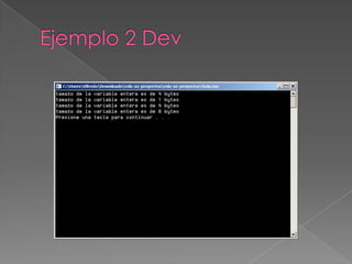 El documento resume las funciones de comentarios, la función main, y la diferencia entre #include <stdio.h> y #include <<stdio.h>>. Explica que los comentarios sirven para documentar el código, main inicializa el programa, e #include llama librerías pero debe usarse <> y no ``. También lista tamaños de tipos de datos comunes.