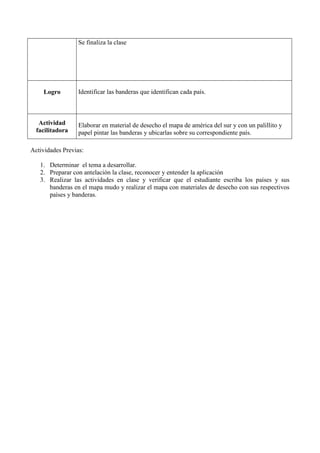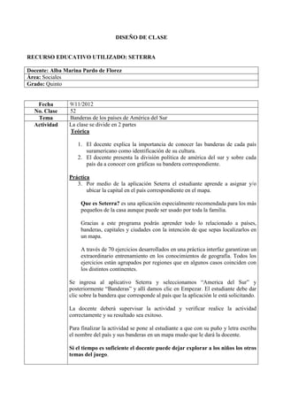 La profesora enseñó sobre las banderas de los países de América del Sur dividida en dos partes: explicó la importancia de conocer las banderas y presentó las banderas de cada país, y luego los estudiantes aprendieron a asignar banderas a países usando la aplicación Seterra y escribieron los nombres de países y sus banderas en un mapa.