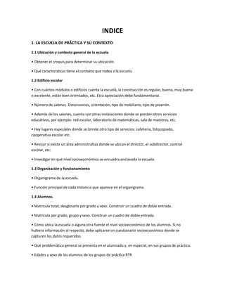 Este documento presenta un reporte de observación de la Escuela Secundaria Blas Galindo. Resume las características principales de la escuela y su contexto, incluyendo su ubicación, edificios, personal y alumnado. Se describe que la escuela cuenta con 3 edificios en buen estado y 15 salones, además de otras instalaciones educativas. El personal docente consta de 20 maestros de diferentes materias. La población estudiantil es de 640 alumnos entre los grados 1°, 2° y 3°, siendo mayoría los hombres.
