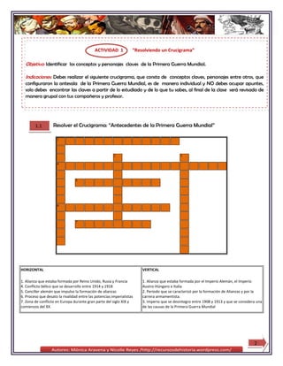 La Primera Guerra Mundial se desarrolló entre 1914 y 1918 e involucró a las principales potencias europeas. Los daños materiales y afectación a todos los ámbitos de la vida fueron incalculables. Los antecedentes incluyeron la formación de dos bloques de alianzas militares opuestas, el Imperio Alemán y el Imperio Austro-Húngaro contra la Triple Entente de Reino Unido, Francia y Rusia, así como la carrera armamentista y el nacionalismo en los Balcanes que aumentaron las tensiones entre las potencias.