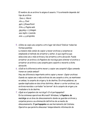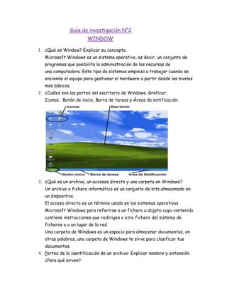 Microsoft Windows es un sistema operativo que administra los recursos de una computadora. Incluye un escritorio con iconos, botón de inicio y barra de tareas. Los archivos se almacenan en carpetas y tienen un nombre y extensión que indica su tipo. Las carpetas y archivos se pueden copiar, mover o eliminar usando métodos como arrastrar y soltar. La papelera de reciclaje guarda archivos eliminados temporalmente antes de borrarlos definitivamente. El explorador permite organizar y ver archivos y carpetas en el sistema de almacenamiento.