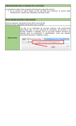 Este documento presenta las instrucciones para una actividad de aprendizaje evaluativa para un curso sobre herramientas Web 2.0 para apoyo docente. Los estudiantes deben crear un blog educativo con tres entradas utilizando diferentes herramientas como Slideshare, YouTube y contenido textual. El blog debe cumplir con ciertos requisitos como el uso de una plantilla temática y el apoyo de cada entrada con un tipo específico de contenido multimedia. El objetivo es que los estudiantes aprendan a utilizar herramientas Web 2.0 y construyan un recurso