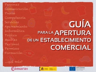 Este documento presenta una guía para la apertura de un establecimiento comercial en España. La guía analiza los aspectos clave que debe considerar un futuro comerciante, incluyendo el producto a vender, el cliente objetivo, los requisitos legales, la ubicación del negocio y más. El objetivo es ayudar a los emprendedores a planificar con éxito la apertura de su negocio minorista. La guía fue desarrollada por el Ministerio de Industria, Turismo y Comercio de España en colaboración con las C