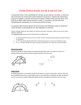 El documento describe siete defensas básicas del karate conocidas como uke. Estas incluyen la jodan age uke para la parte alta, la gedan barai uke para la parte baja, la uchi uke, soto uke y shuto uke para la parte media, y la morote uke y kakiwake uke que refuerzan la defensa de la parte media.