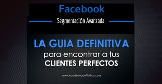 Esta guía proporciona estrategias para segmentar audiencias en campañas de PPC en Facebook, permitiendo a los anunciantes llegar a clientes ideales mediante opciones de segmentación avanzadas. Se enfatiza la importancia de conocer al cliente perfecto, investigando aspectos como edad, ubicación y hábitos, y se ofrecen herramientas para espiar competidores y sus visitantes. Además, se detallan diversas categorías de segmentación, tales como intereses, datos demográficos y comportamientos, que facilitan la creación de anuncios más efectivos.