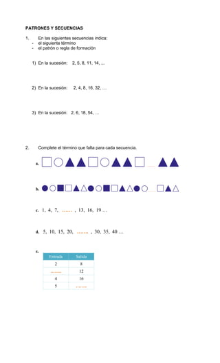 Este documento es una guía de trabajo sobre números decimales, secuencias, gráficos y media aritmética para estudiantes de 5° básico. Incluye ejercicios sobre números decimales, patrones y secuencias numéricas, cálculo de medias aritméticas e interpretación de gráficos. El objetivo es que los estudiantes practiquen y desarrollen habilidades en estas áreas matemáticas fundamentales.