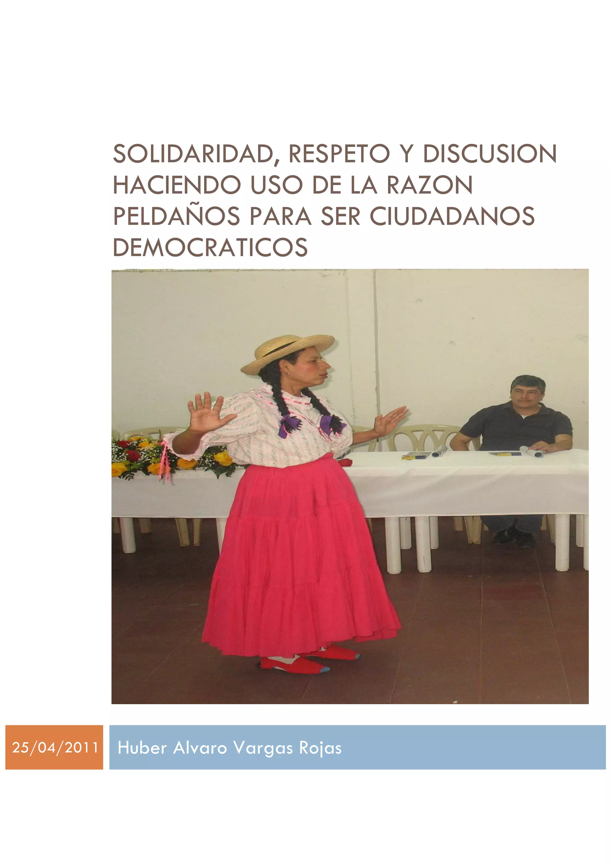 El documento presenta una guía didáctica multimedia enfocada en promover la solidaridad, el respeto y el uso de la razón como valores fundamentales para formar ciudadanos democráticos entre estudiantes de educación media. A través de módulos interactivos, se ofrecen actividades y evaluaciones para sensibilizar a los estudiantes sobre estos valores y su aplicación en la vida cotidiana. Además, incluye orientaciones para docentes y recursos adicionales para facilitar la implementación del material en el aula.