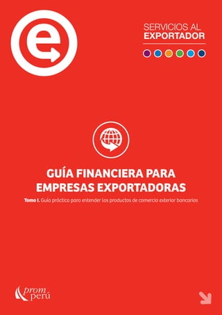 Este documento presenta una guía sobre los productos financieros relacionados al comercio exterior. Explica las operaciones básicas de comercio internacional, los factores de riesgo, las formas y medios de pago como transferencias, cobranzas e instrumentos como cartas de crédito. También cubre temas de financiamiento, programas de garantía, coberturas cambiarias y derivados financieros. Contiene anexos con detalles sobre Incoterms, casos prácticos, glosarios, modelos e instrucciones para facilitar el uso