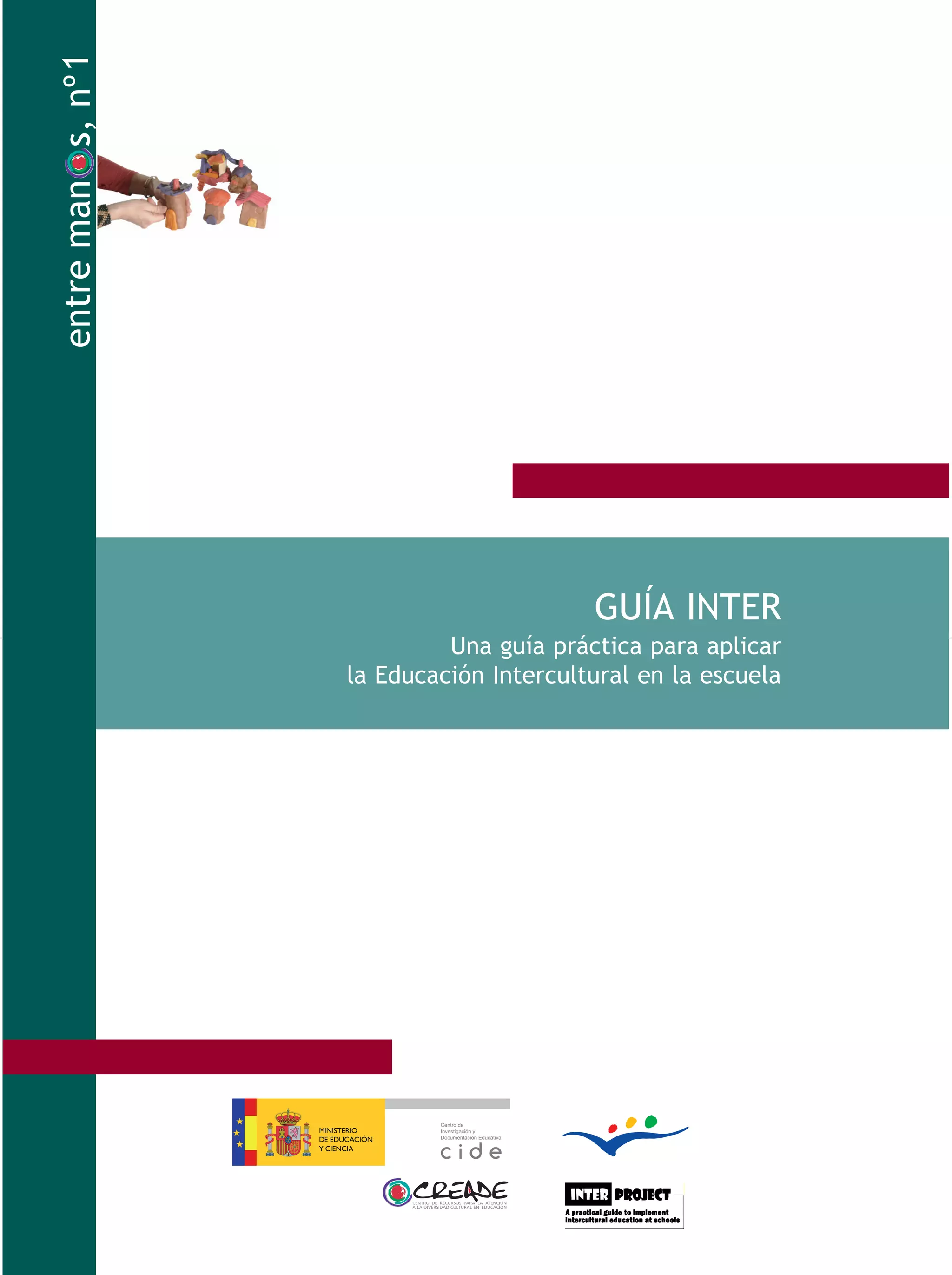 Este documento presenta una guía práctica para aplicar la educación intercultural en la escuela. La guía contiene siete módulos que abordan temas como los fundamentos de la educación intercultural, la diversidad cultural, la relación entre la escuela, la familia y la comunidad, los marcos teóricos, las políticas educativas, la evaluación y calidad, y la estructura y organización escolar. Cada módulo incluye secciones sobre información, actividades, colaboración, planificación, recursos y referencias para ay
