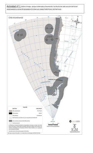 Este documento presenta un recorrido por las diferentes regiones geográficas de Chile, dividiéndolas en 11 estaciones que describen las características climáticas, paisajísticas y de vegetación de cada zona, desde el desierto del norte hasta la Antártica y el océano Pacífico. Se incluyen actividades para que los estudiantes identifiquen en un mapa las diferentes regiones descritas.