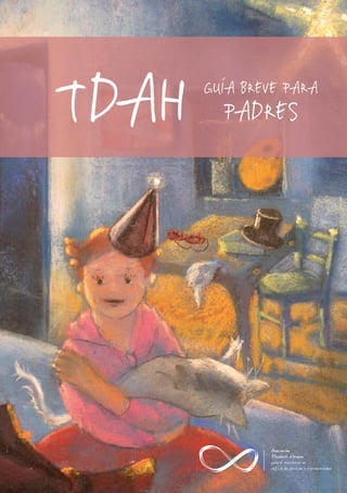Este documento ofrece información sobre el trastorno por déficit de atención e hiperactividad (TDAH). Explica que se caracteriza por dificultades para prestar atención, concentrarse e impulsividad, y que afecta a niños, adolescentes y adultos. También describe que se debe a factores genéticos y ambientales que afectan el desarrollo del cerebro, y que es importante realizar un diagnóstico correcto para recibir el tratamiento adecuado. Finalmente, ofrece consejos para que los padres puedan ayudar