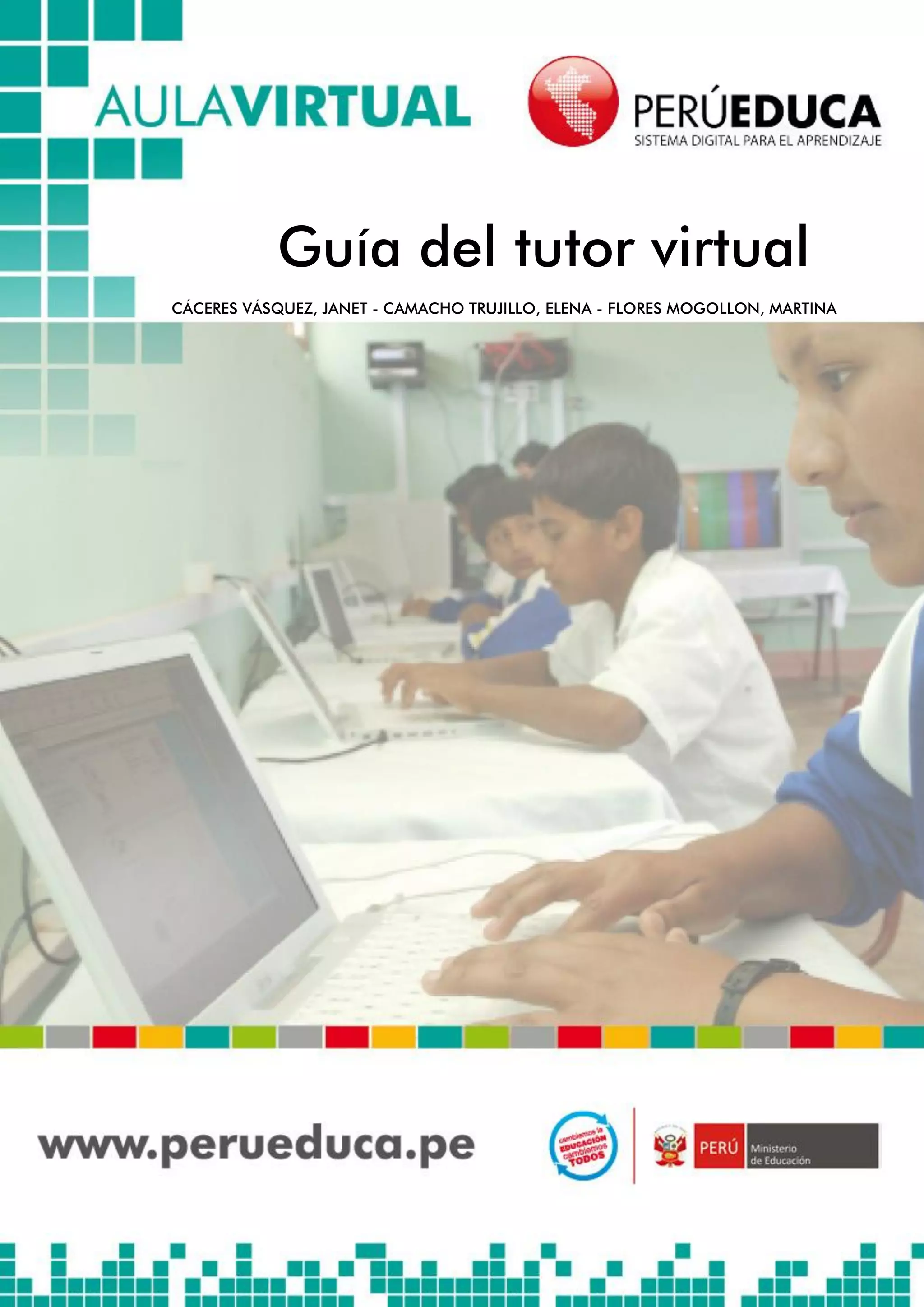 Este documento presenta una guía para tutores virtuales de un curso sobre el uso de Moodle como plataforma de aprendizaje. Explica la organización del curso en módulos y temas, el rol del tutor virtual, las herramientas de comunicación como correo electrónico y foros, y estrategias para resolver dudas, motivar a los estudiantes y realizar un seguimiento efectivo. Además, detalla un sistema de evaluación continua y un cronograma para las actividades del curso.