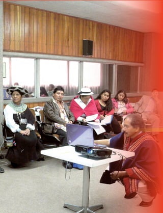 Este documento presenta una guía metodológica para la construcción participativa del Proyecto Educativo Institucional (PEI). Explica la importancia del PEI en el nuevo contexto educativo ecuatoriano definido por la Constitución de 2008 y la Ley Orgánica de Educación Intercultural de 2011. Describe el proceso de construcción del PEI, que incluye etapas de sensibilización, identificación de la realidad institucional, definición de la visión y misión deseadas, y planificación del cambio. Resalta la necesidad