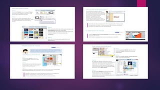 Este documento proporciona una guía sobre PowerPoint. Explica qué es PowerPoint y sus usos principales, como crear presentaciones con diapositivas que incluyen texto, imágenes y videos. También cubre los elementos clave de PowerPoint como diapositivas, transiciones, animaciones y cómo insertar y editar videos. Además, explica cómo reproducir y navegar presentaciones y configurar diferentes modos de visualización.