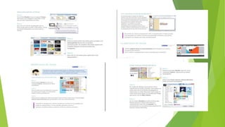 Este documento proporciona una guía sobre PowerPoint. Explica que PowerPoint es un programa que se utiliza para crear presentaciones incorporando texto, imágenes, gráficos y videos para compartir información de manera efectiva. Luego, detalla los seis componentes principales del entorno de trabajo de PowerPoint y proporciona instrucciones sobre cómo crear, editar y administrar diapositivas, incluida la copia, duplicación y movimiento de diapositivas entre otras funciones. Finalmente, cubre temas adicionales como agregar notas, capturas de pant