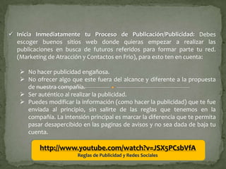 Este documento proporciona instrucciones para nuevos afiliados sobre cómo comenzar en el negocio, incluyendo publicar anuncios de empleo en sitios web, optimizar el correo electrónico, crear un blog, vender cursos, y ser un patrocinador responsable. También enfatiza la importancia de la persistencia.
