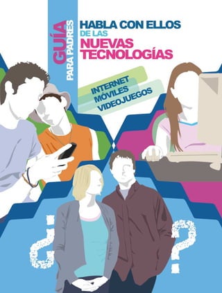 Este documento presenta una guía para padres sobre el uso adecuado de las nuevas tecnologías por parte de los adolescentes. Introduce los principales temas que se abordan: Internet, videojuegos y teléfonos móviles. Explica que los adolescentes usan principalmente estas herramientas para comunicarse y entretenerse, aunque también existen riesgos si el uso no es adecuado. La guía proporciona consejos para que los padres ayuden a prevenir un uso problemático y fomenten uno seguro y responsable.