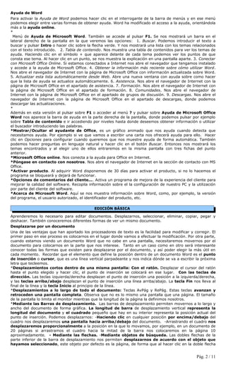 Este documento describe los elementos básicos de la interfaz de Microsoft Word, incluyendo la pantalla inicial, las barras de menús, herramientas y estado, así como formas de desplazarse y obtener ayuda dentro de un documento de Word. Explica cómo iniciar Word, identificar los componentes clave de la interfaz como las barras y paneles, y proporciona instrucciones básicas sobre cómo editar textos mediante la selección, eliminación, copia y pegado de contenido.