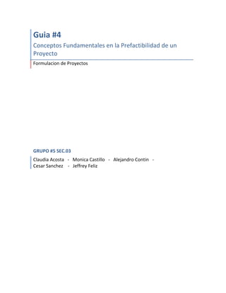 Este documento presenta los conceptos fundamentales de un Estudio de Prefactibilidad (EPF) de un proyecto. Explica que un EPF consiste en una investigación preliminar que analiza factores como el mercado, aspectos técnicos, económicos y financieros de posibles alternativas de inversión para el proyecto. Los objetivos de un EPF son reducir la incertidumbre y estimar indicadores de rentabilidad que apoyen la toma de decisiones sobre la inversión. Un EPF incluye estudios de mercado, técnicos, econó