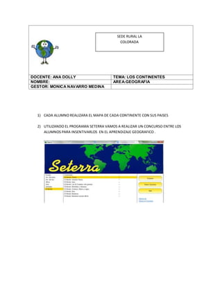 Los alumnos realizarán mapas de cada continente e identificarán sus países. La maestra Ana Dolly organizará un concurso usando el programa Seterra para incentivar el aprendizaje geográfico de los alumnos.