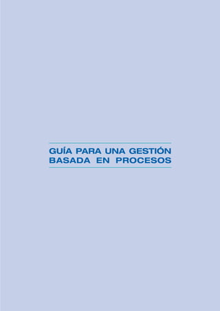 Este documento presenta los principios de la gestión basada en procesos. Explica que los modelos de gestión como ISO 9000 y EFQM promueven este enfoque, el cual permite identificar indicadores para evaluar el rendimiento de las actividades de una organización. También describe cómo enfocar los sistemas de gestión mediante la identificación, descripción, medición, mejora y documentación de los procesos, lo que permite a las organizaciones alcanzar sus objetivos de manera efectiva.