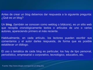 Este documento proporciona una guía paso a paso para crear un blog en WordPress. Explica cómo registrarse e iniciar sesión, configurar la apariencia y opciones del blog, agregar contenido como entradas, imágenes y categorías, y gestionar comentarios. El objetivo final es proporcionar las herramientas necesarias para administrar con éxito un blog en WordPress.