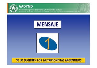 El documento presenta recomendaciones de nutricionistas sobre una alimentación saludable. Sugiere comer variados alimentos de los diferentes grupos en cada comida, incluyendo frutas, verduras, leche, carnes y legumbres. También recomienda realizar actividad física regular y consultar a un nutricionista para controlar el peso de manera saludable.