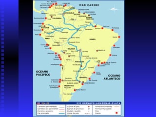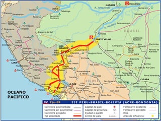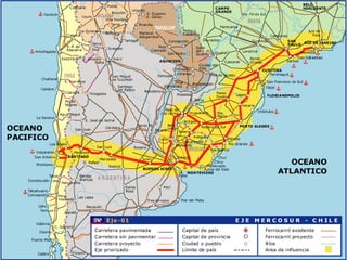 El documento describe los avances de la Iniciativa para la Integración de la Infraestructura Regional Suramericana (IIRSA) en los últimos 20 meses. Se han identificado cerca de 300 proyectos de integración, más de 140 elegibles para la primera generación. Se han establecido grupos técnicos ejecutivos para supervisar proyectos en ejes clave y se han realizado estudios en varias áreas. La IIRSA busca mejorar la infraestructura física para promover la competitividad y el desarrollo económico integrado en Amé