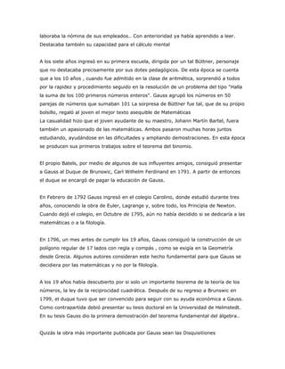 1) Gauss fue uno de los tres genios de las matemáticas junto con Arquímedes y Newton. Hizo contribuciones increíbles en todos los campos matemáticos.