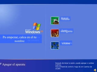 Este documento en asturiano describe las interacciones entre un hombre y su computadora. La computadora se comporta de manera errática y causa problemas, lo que frustra al hombre. Él le pide a la computadora que se apague varias veces, pero la máquina continúa fallando. Finalmente, el hombre decide apagarla por su cuenta debido a su mal funcionamiento.