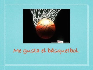 El documento describe los gustos de varias personas e incluye actividades como el básquetbol, el arte, la naturaleza, el español, los perros, los deportes, la música y los animales. También menciona que a Katia y Bianca les gusta ir al cine y a María y Bianca les gustan las frutas.