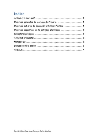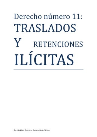 Este documento presenta una actividad educativa para enseñar a los estudiantes sobre el Artículo 11 de los Derechos del Niño, el cual protege a los niños contra los traslados y retenciones ilícitas. La actividad involucra clasificar imágenes que muestran situaciones correctas e incorrectas, y luego representarlas en un mural utilizando acuarelas. El objetivo es que los estudiantes comprendan el significado y la importancia de este derecho fundamental.