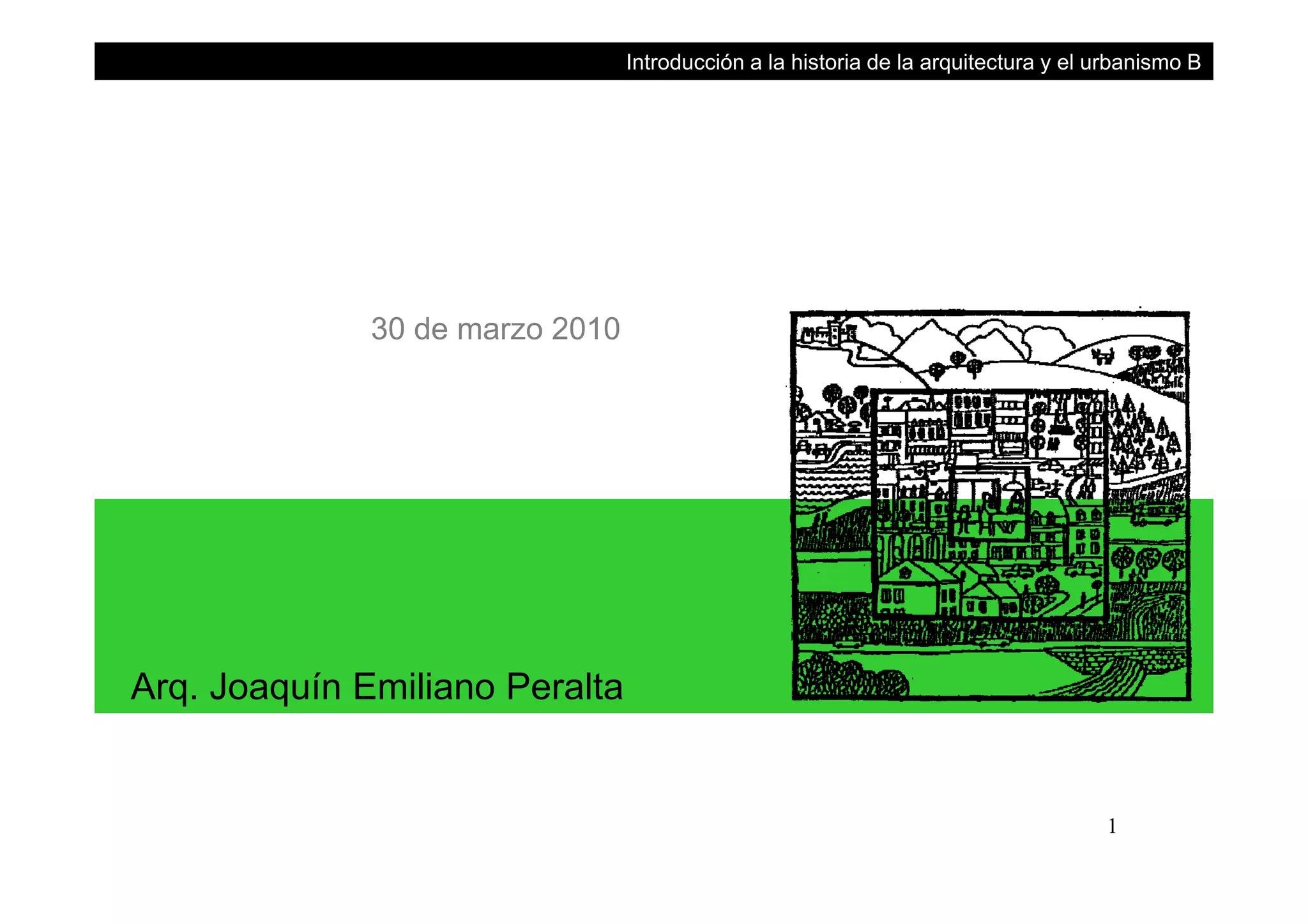 El documento presenta una introducción al método de estudio de la historia de la arquitectura y el urbanismo. Explica las revoluciones agrícola y urbana, las primeras ciudades en culturas fluviales como Mesopotamia y Ur/Babilonia. Describe el método de análisis mediante variables interdependientes y diferentes escalas. Incluye conceptos instrumentales y periodizaciones, y explica la organización del curso a través de trabajos prácticos centrados en largas duraciones.
