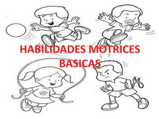 Las habilidades motoras básicas son las habilidades generales y necesarias para la vida cotidiana que permiten mover el cuerpo y manipular objetos, y sientan las bases para habilidades motoras más avanzadas. Incluyen desplazamientos, saltos, giros y otros movimientos corporales, así como lanzamientos, recepciones y otros que implican objetos. Su aprendizaje temprano facilita el desarrollo de habilidades motoras más complejas.