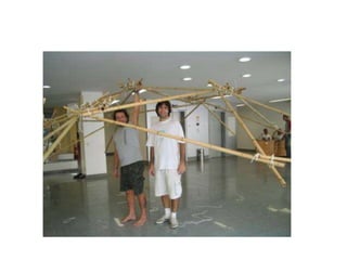 Este documento describe un proyecto de taller elemental en el que los estudiantes deben diseñar y construir un habitáculo para dos noches que cumpla con las necesidades básicas de alojamiento para el número de integrantes de cada grupo. Se especifica que el diseño debe mostrar ingenio y creatividad, y que los materiales permitidos son polietileno, varas de coligues, tubos de PVC, alambre o cuerdas. El documento también incluye fechas para la corrección de maquetas y entrega del proyecto terminado.