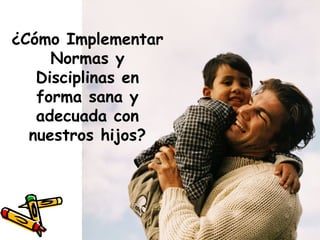 El documento habla sobre estrategias para promover hábitos, límites y normas saludables en la familia. Explica que los padres deben establecer reglas claras en áreas como los espacios de la casa, rutinas y deberes de cada miembro, usando un estilo democrático. También describe diferentes estilos de crianza como autoritario, permisivo y sobreprotector, señalando que el estilo democrático es el más positivo para el desarrollo del niño.