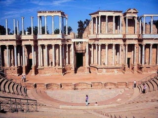 El teatro es una forma de arte escénico que representa historias actuadas frente a una audiencia utilizando discurso, gestos, escenografía, música y espectáculo. Se originó a partir de rituales mágicos y ceremonias religiosas en diversas civilizaciones antiguas. Sus elementos básicos incluyen obras de teatro escritas en diálogos, la dirección que coordina todos los aspectos de la producción, y la actuación cuya técnica ha variado a lo largo de la historia.